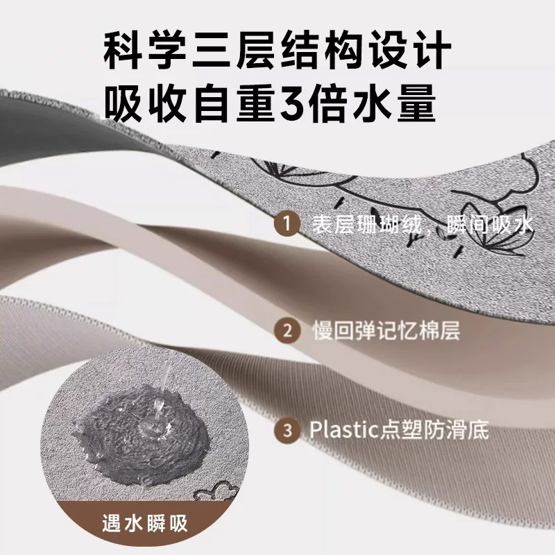 Впитывающий коврик для ванной комнаты Утолщенный коврик для туалета Противоскользящий коврик для ванной комнаты Быстросохнущий коврик для двери ванной комнаты