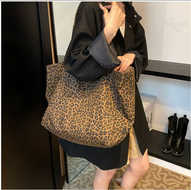Новая сумка-тоут с леопардовым принтом большой вместимости для женщин Осень/зима Модная сумка из канваса Influencer Mum Сумка через плечо Сумка для покупок