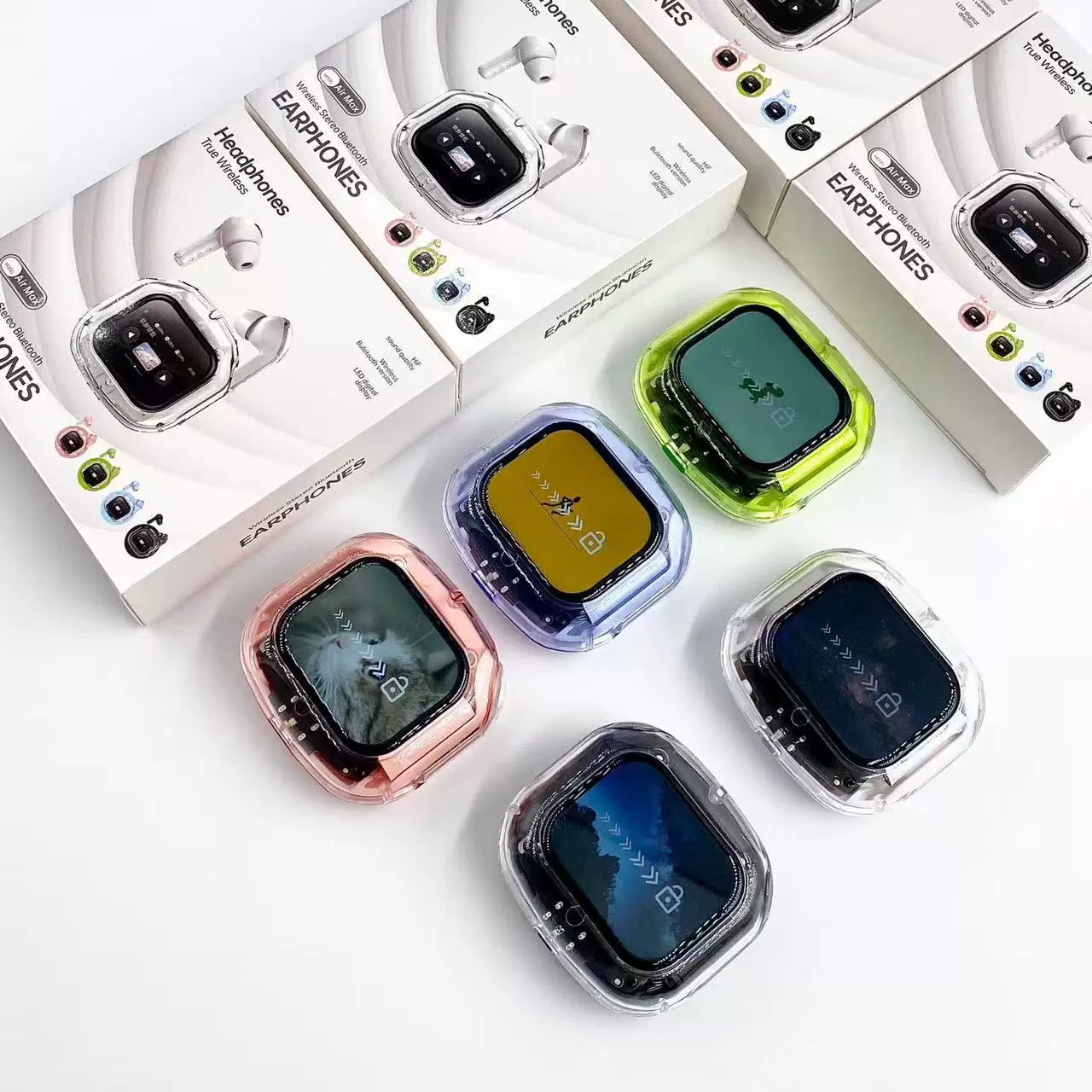 Прозрачные Bluetooth-наушники AirMax с цветным дисплеем и увеличенным сроком службы батареи